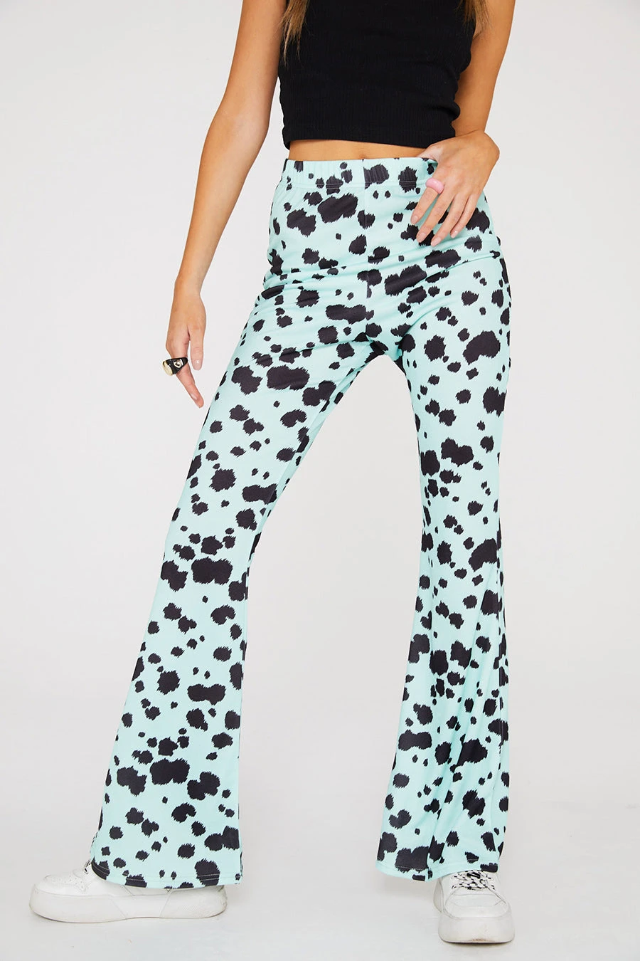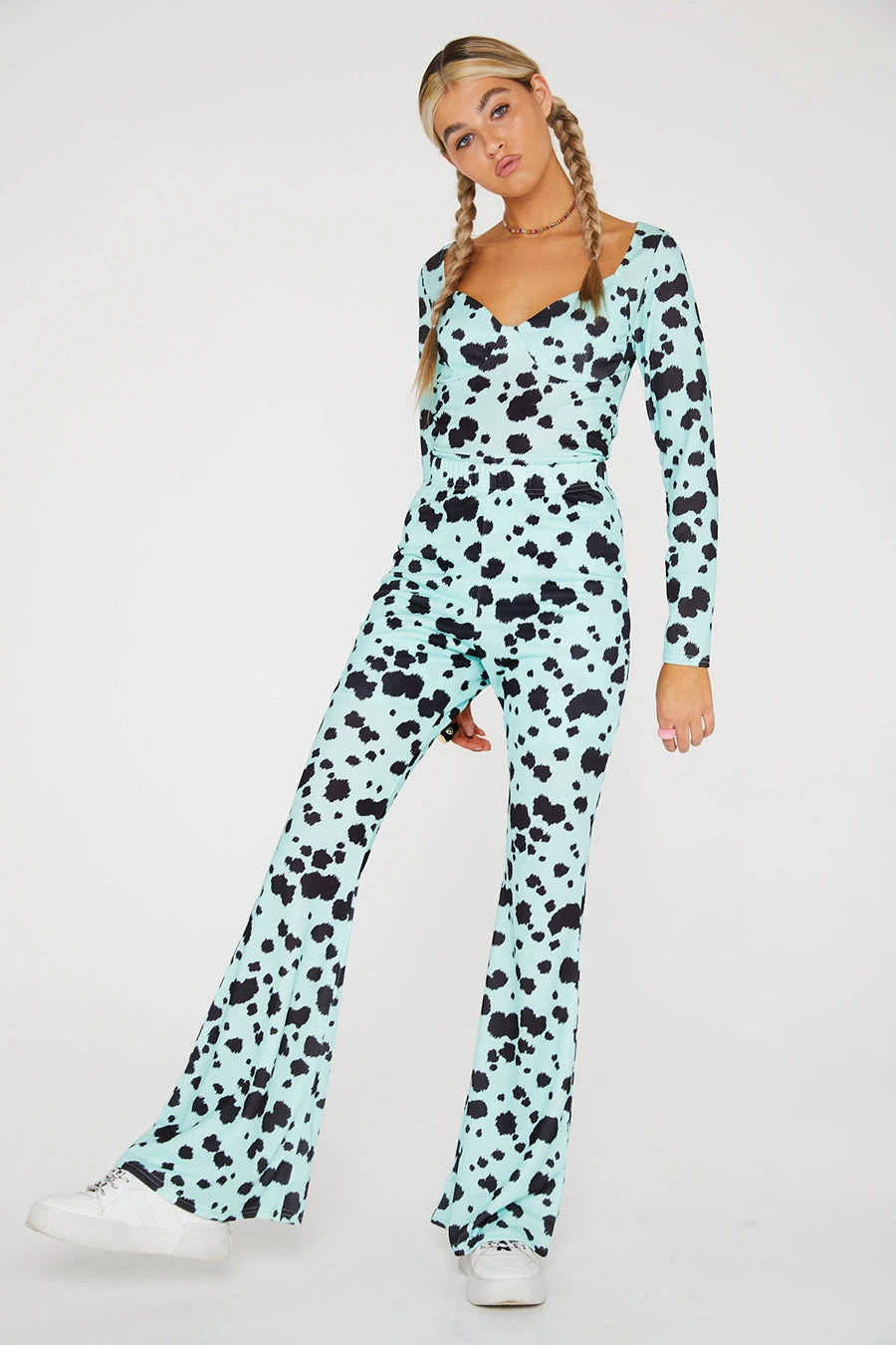 – Flares are styled over the Dalmation Unitard for catsuit look