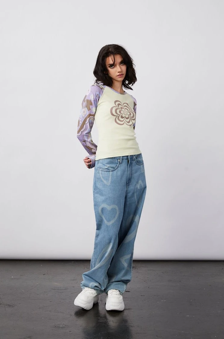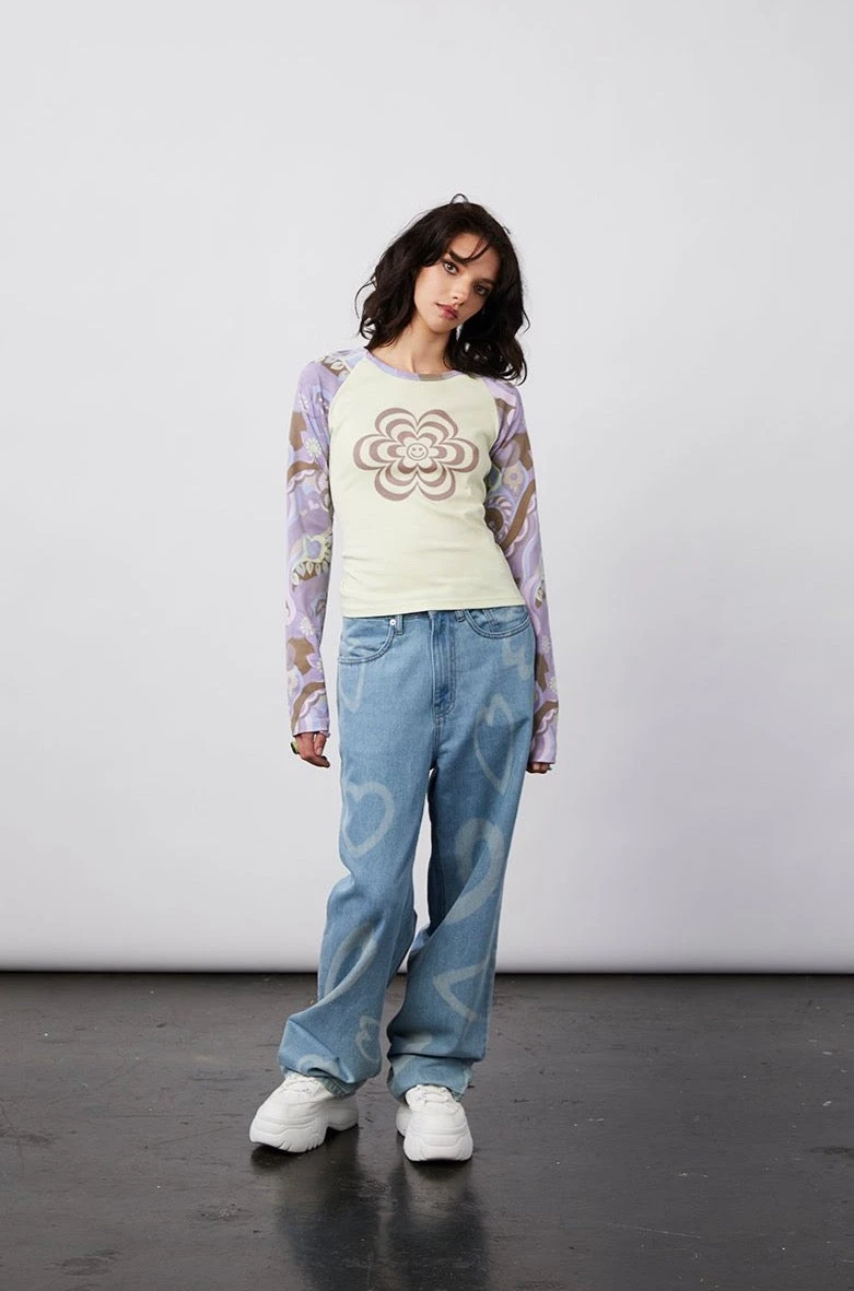 New Girl Order Flower Trippy Long Sleeve Raglan Top