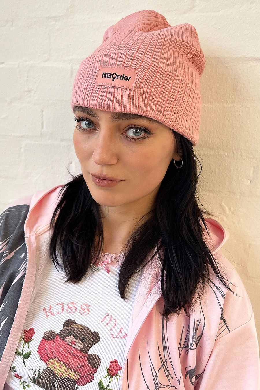 New Girl Order RIBBED TIE DYE BEANIE WITH BADGE DETAIL – OATMEAL